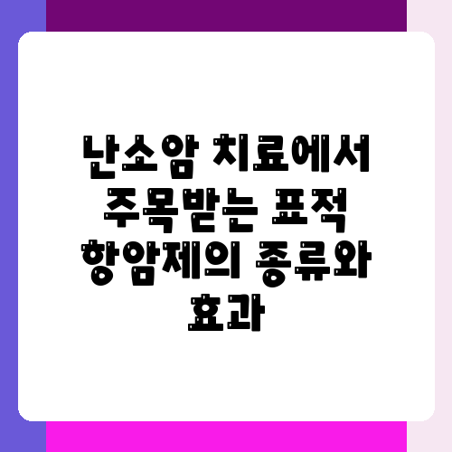 대표적인 난소암 표적 항암제로는 PARP 억제제, 항체-약물 접합체(ADC), 혈관 생성 억제제 등이 있습니다. PARP 억제제는 BRCA 유전자 변이가 있는 난소암에 효과적인 것으로 알려져 있으며, olparib, talazoparib 등의 약제가 사용됩니다. 항체-약물 접합체는 암세포에 특이적으로 결합하는 항체와 항암제를 결합시킨 약물로, 암세포에만 선택적으로 항암제를 전달하여 효과를 높이고 정상세포에 대한 손상을 최소화합니다. 혈관 생성 억제제는 암세포의 혈관 생성을 억제하여 암세포의 성장을 막는 약물입니다. 각 약제의 효과와 부작용은 다르므로, 담당 의사와 충분한 상담을 통해 자신에게 맞는 약제를 선택해야 합니다. 또한, 최신 연구 결과를 바탕으로 새로운 표적 항암제가 지속적으로 개발되고 있으니, 항상 최신 정보를 확인하는 것이 좋겠습니다.