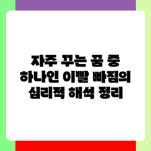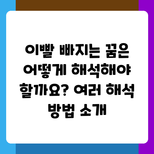 꿈에서 이빨이 빠지는 꿈을 자주 꾸시나요? 왠지 불안하고 찝찝한 기분이 들면서, 혹시 나쁜 일이 생기는 것은 아닐까 걱정하시는 분들 많으실 거예요. 사실 이 꿈은 상당히 흔한 꿈 중 하나이고요, 심리적으로 무언가를 반영하는 경우가 많답니다. 오늘은 이빨 빠지는 꿈의 다양한 심리적 해석을 함께 살펴보며, 여러분의 꿈을 이해하는 데 도움을 드리고자 해요.