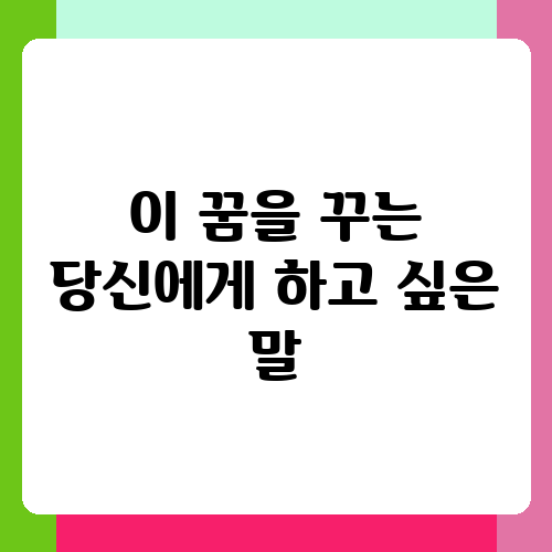 이 꿈을 꾸는 당신에게 하고 싶은 말