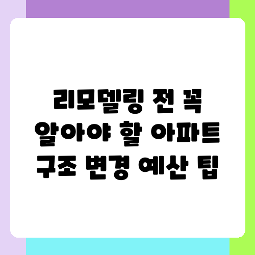 - 리모델링 전 꼭 알아야 할 아파트 구조 변경 예산 팁 목차
